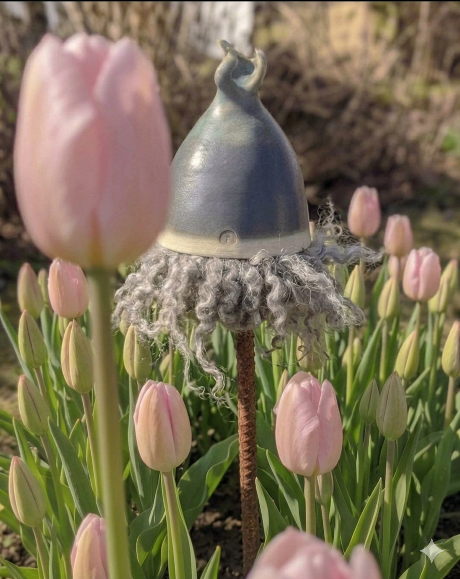 Stoppa i halm, torrt gräs, eller tidningspapper, gärna lite vått, i trädgårdstoppen. Placera på armeringsjärnet/pinnen bland tex. dina dahlior och låt den göra jobbet.